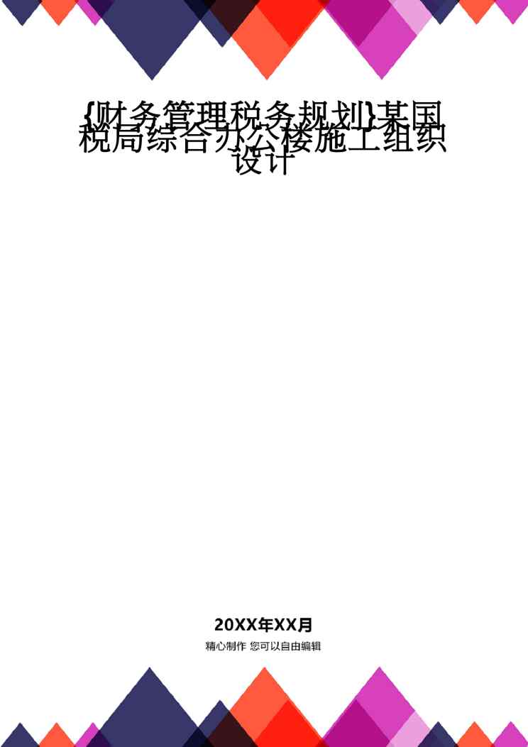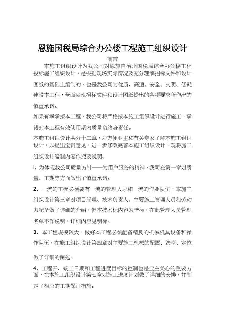 本站资深用户发布了最新的《【财务管理税务规划 】某国税局综合办公楼施工组织设计》文档,以下内容为预览,详细内容可下载阅读。 声明:本站所有文章,如无特殊说明或标注,均为本站原创发布。任何个人或组织,在未征得本站同意时,禁止复制、盗用、采集、发布本站内容到任何网站、书籍等各类媒体平台。如若本站内容侵犯了原著者的合法权益,可联系我们进行处理。
