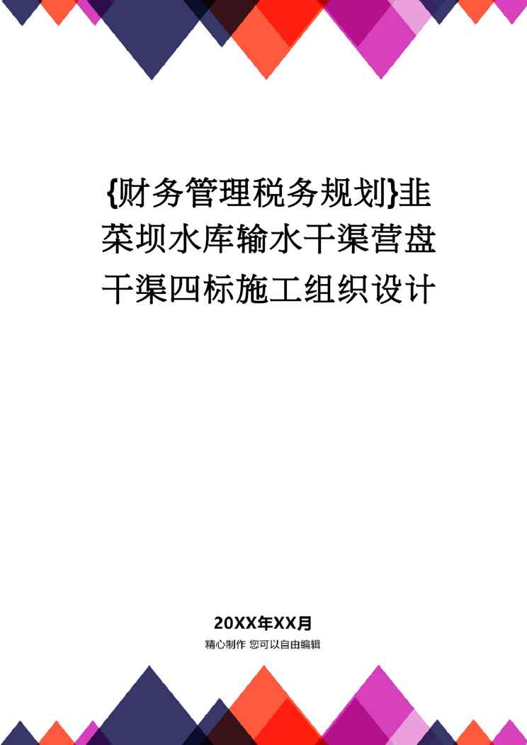 本站正式发布了《【财务管理税务规划 】韭菜坝水库输水干渠营盘干渠四标施工组织设计》文档,文档详细内容可下载阅读。 声明:本站所有文章,如无特殊说明或标注,均为本站原创发布。任何个人或组织,在未征得本站同意时,禁止复制、盗用、采集、发布本站内容到任何网站、书籍等各类媒体平台。如若本站内容侵犯了原著者的合法权益,可联系我们进行处理。