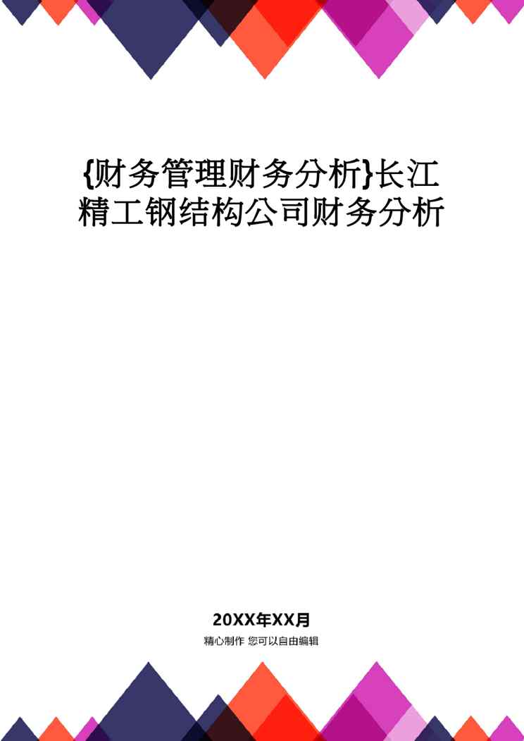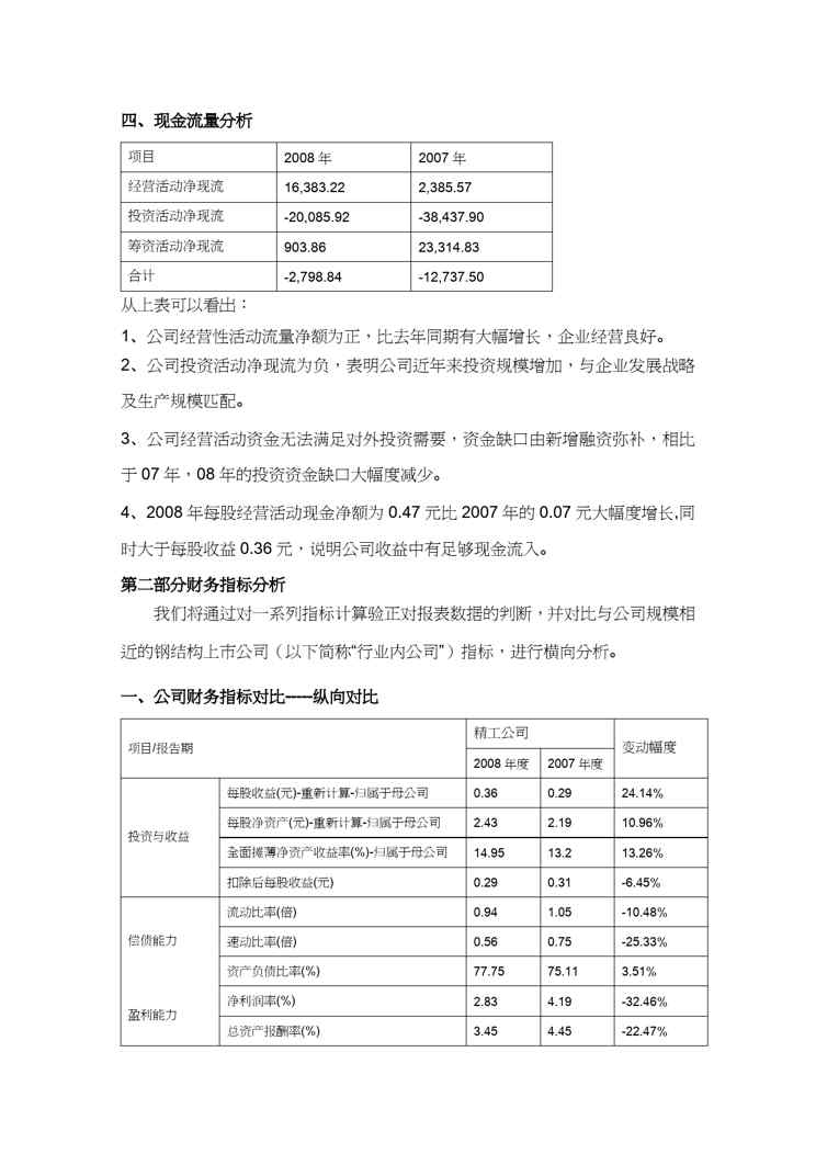 本站资深用户发布了最新的《【财务管理财务分析】 长江精工钢结构公司财务分析》文档,以下内容为预览,详细内容可下载阅读。 声明:本站所有文章,如无特殊说明或标注,均为本站原创发布。任何个人或组织,在未征得本站同意时,禁止复制、盗用、采集、发布本站内容到任何网站、书籍等各类媒体平台。如若本站内容侵犯了原著者的合法权益,可联系我们进行处理。
