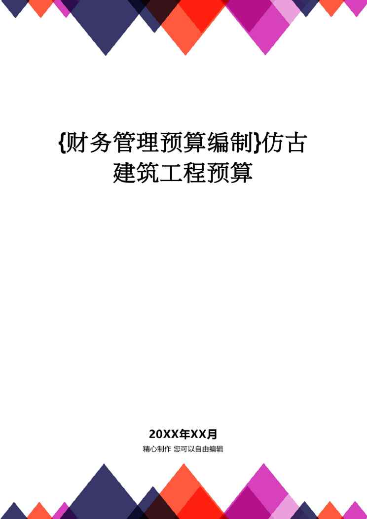 本站资深用户发布了最新的《【财务管理预算编制 】仿古建筑工程预算》文档,以下内容为预览,详细内容可下载阅读。 声明:本站所有文章,如无特殊说明或标注,均为本站原创发布。任何个人或组织,在未征得本站同意时,禁止复制、盗用、采集、发布本站内容到任何网站、书籍等各类媒体平台。如若本站内容侵犯了原著者的合法权益,可联系我们进行处理。