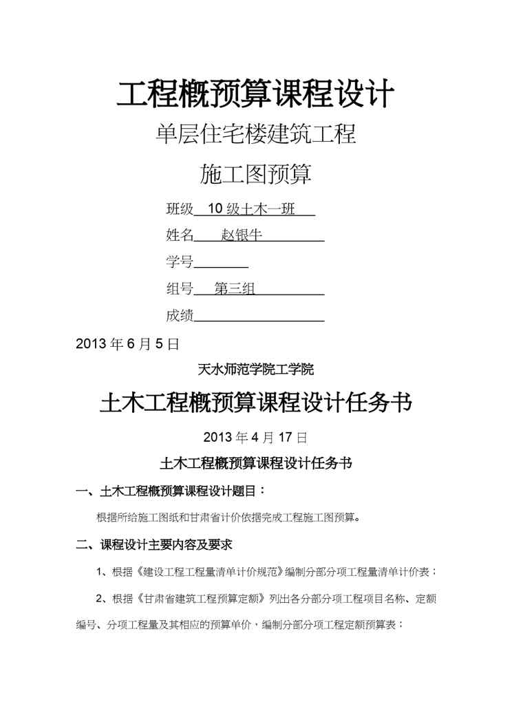 不久前,最新文档《【财务管理预算编制 】单层住宅楼建筑工程施工图预算》全文正式在本站发布,感兴趣的用户可以下载阅读。 声明:本站所有文章,如无特殊说明或标注,均为本站原创发布。任何个人或组织,在未征得本站同意时,禁止复制、盗用、采集、发布本站内容到任何网站、书籍等各类媒体平台。如若本站内容侵犯了原著者的合法权益,可联系我们进行处理。