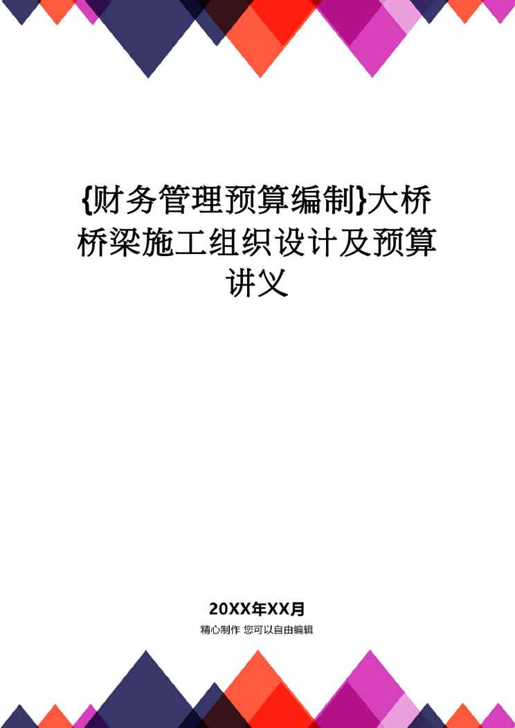 本站资深用户发布了最新的《【财务管理预算编制 】大桥桥梁施工组织设计及预算讲义》文档,以下内容为预览,详细内容可下载阅读。 声明:本站所有文章,如无特殊说明或标注,均为本站原创发布。任何个人或组织,在未征得本站同意时,禁止复制、盗用、采集、发布本站内容到任何网站、书籍等各类媒体平台。如若本站内容侵犯了原著者的合法权益,可联系我们进行处理。