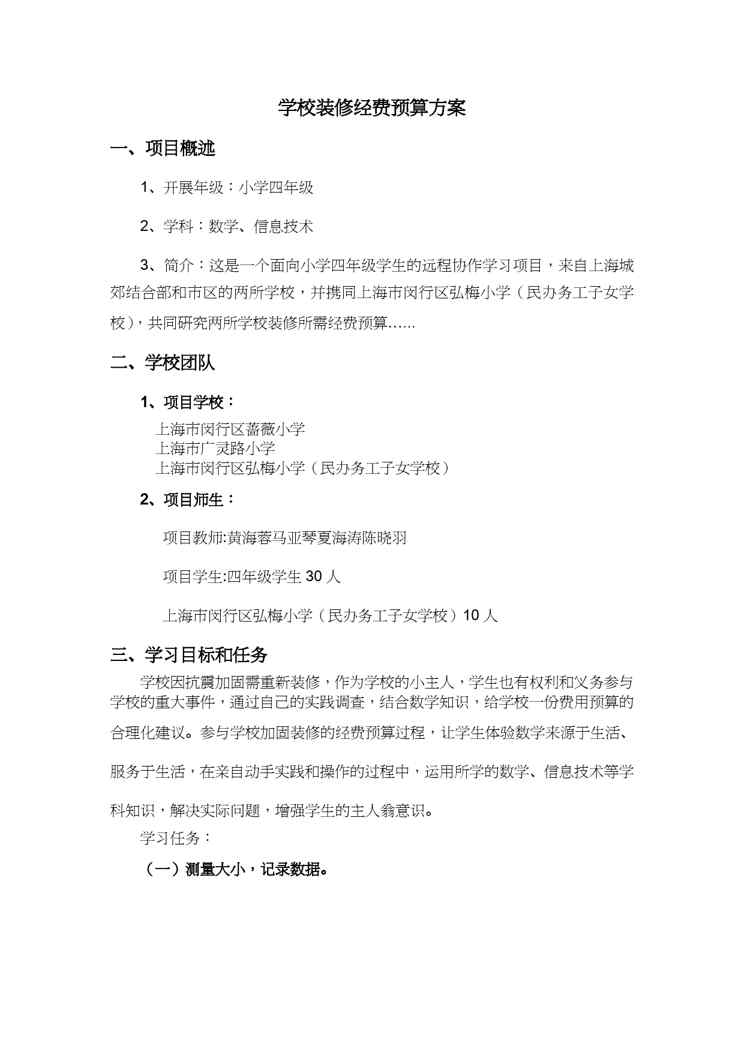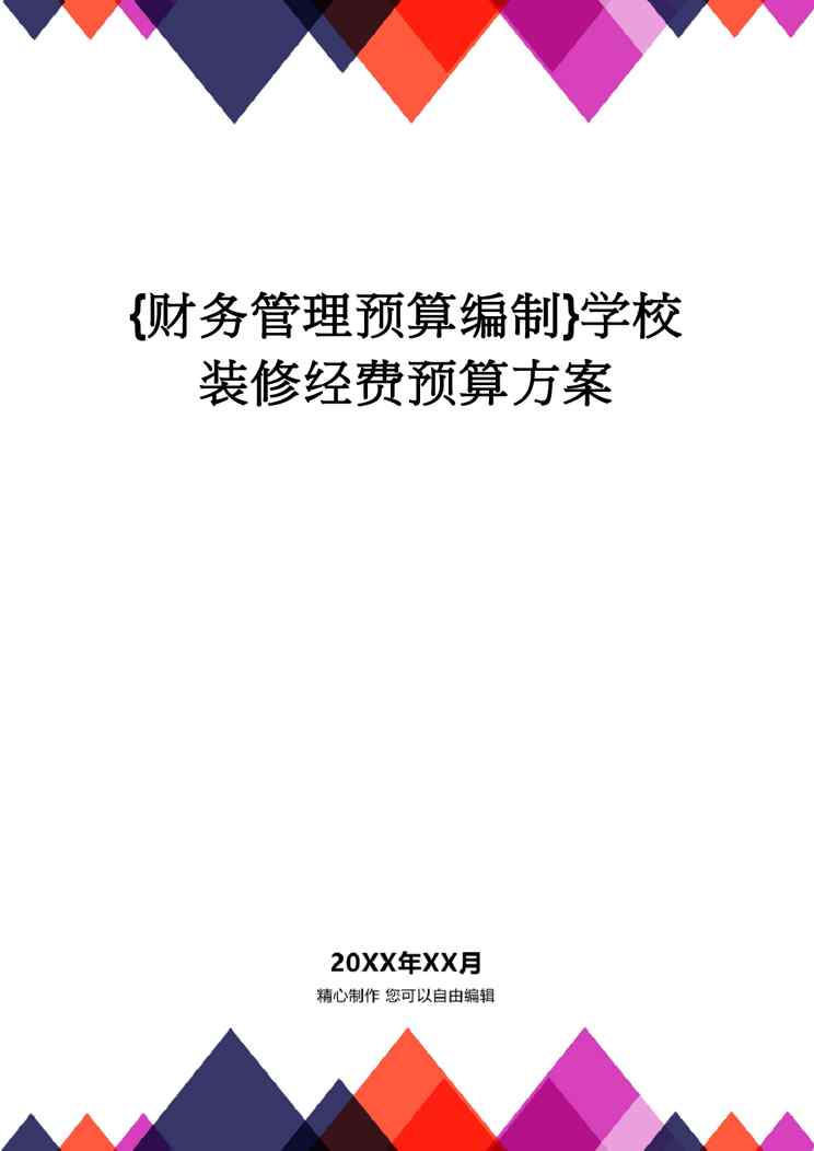 本站正式发布了《【财务管理预算编制 】学校装修经费预算方案》文档,文档详细内容可下载阅读。 声明:本站所有文章,如无特殊说明或标注,均为本站原创发布。任何个人或组织,在未征得本站同意时,禁止复制、盗用、采集、发布本站内容到任何网站、书籍等各类媒体平台。如若本站内容侵犯了原著者的合法权益,可联系我们进行处理。