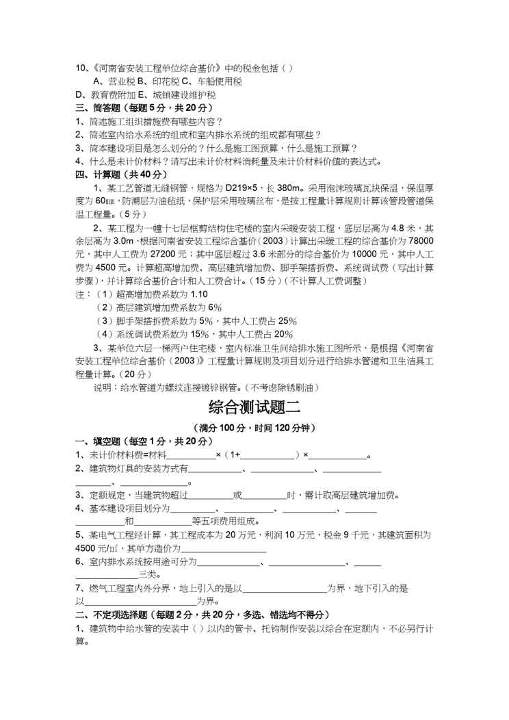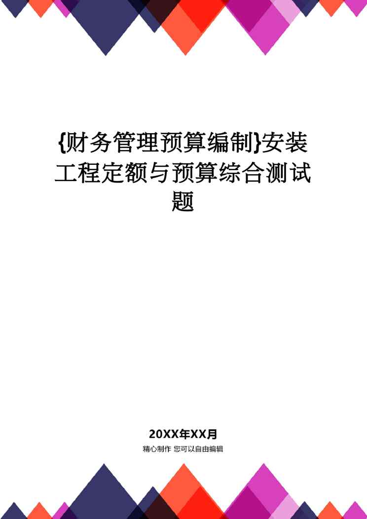 本站正式发布了《【财务管理预算编制 】安装工程定额与预算综合测试题》文档,文档详细内容可下载阅读。 声明:本站所有文章,如无特殊说明或标注,均为本站原创发布。任何个人或组织,在未征得本站同意时,禁止复制、盗用、采集、发布本站内容到任何网站、书籍等各类媒体平台。如若本站内容侵犯了原著者的合法权益,可联系我们进行处理。