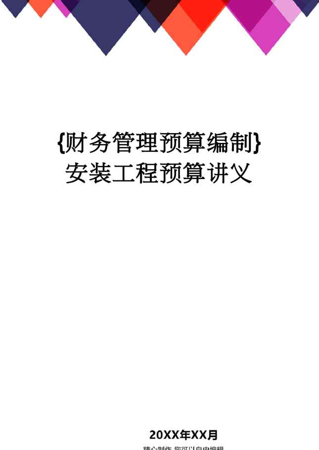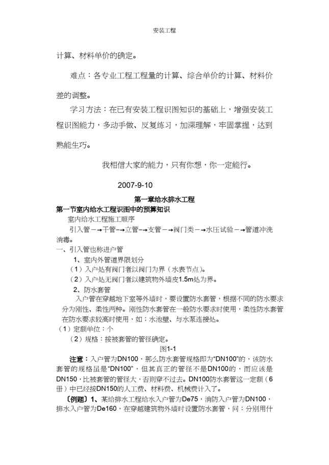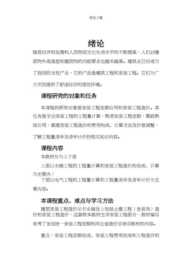 本站资深用户发布了最新的《【财务管理预算编制 】安装工程预算讲义》文档,以下内容为预览,详细内容可下载阅读。 声明:本站所有文章,如无特殊说明或标注,均为本站原创发布。任何个人或组织,在未征得本站同意时,禁止复制、盗用、采集、发布本站内容到任何网站、书籍等各类媒体平台。如若本站内容侵犯了原著者的合法权益,可联系我们进行处理。