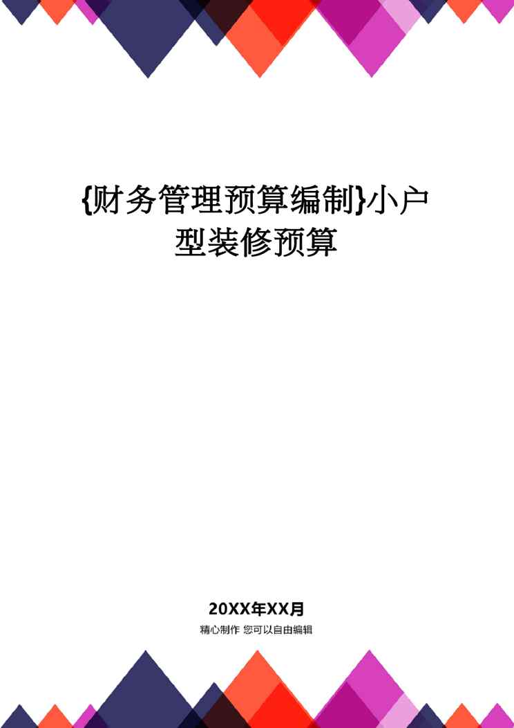本站正式发布了《【财务管理预算编制 】小户型装修预算》文档,文档详细内容可下载阅读。 声明:本站所有文章,如无特殊说明或标注,均为本站原创发布。任何个人或组织,在未征得本站同意时,禁止复制、盗用、采集、发布本站内容到任何网站、书籍等各类媒体平台。如若本站内容侵犯了原著者的合法权益,可联系我们进行处理。