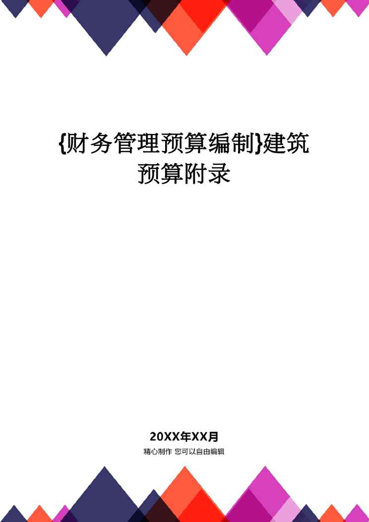 不久前,最新文档《【财务管理预算编制 】建筑预算附录》全文正式在本站发布,感兴趣的用户可以下载阅读。 声明:本站所有文章,如无特殊说明或标注,均为本站原创发布。任何个人或组织,在未征得本站同意时,禁止复制、盗用、采集、发布本站内容到任何网站、书籍等各类媒体平台。如若本站内容侵犯了原著者的合法权益,可联系我们进行处理。