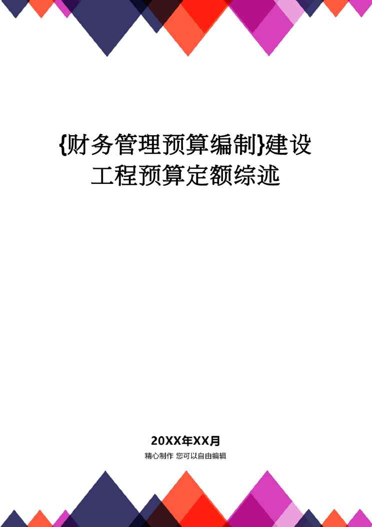 本站资深用户发布了最新的《【财务管理预算编制 】建设工程预算定额综述》文档,以下内容为预览,详细内容可下载阅读。 声明:本站所有文章,如无特殊说明或标注,均为本站原创发布。任何个人或组织,在未征得本站同意时,禁止复制、盗用、采集、发布本站内容到任何网站、书籍等各类媒体平台。如若本站内容侵犯了原著者的合法权益,可联系我们进行处理。