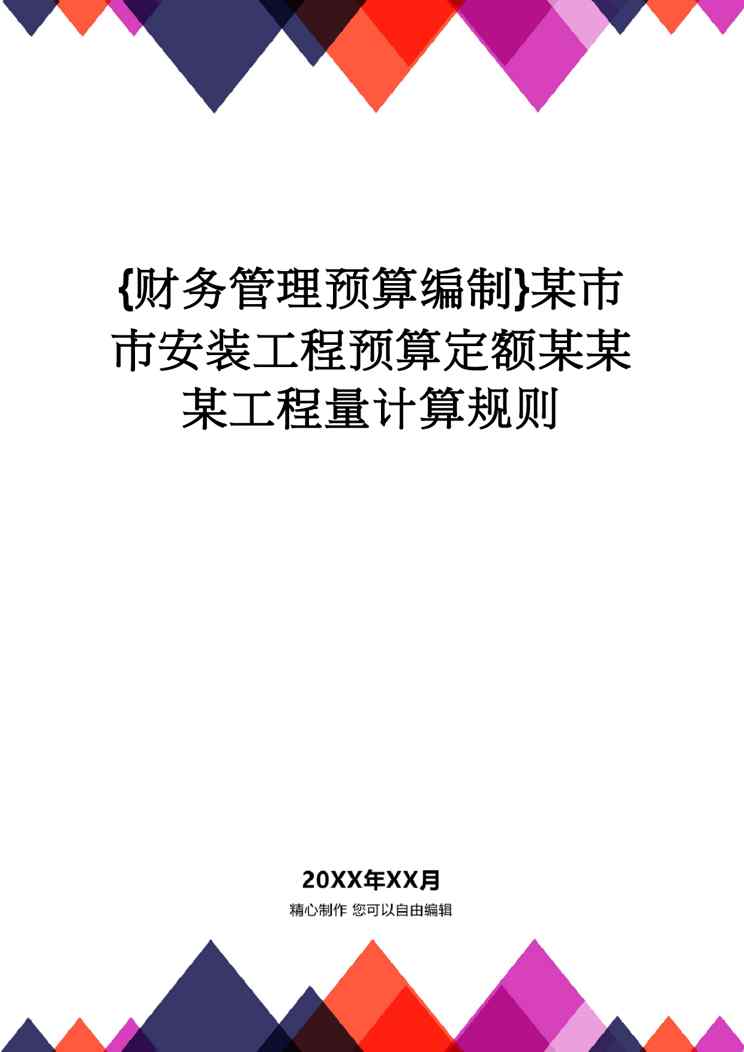 本站资深用户发布了最新的《【财务管理预算编制 】某市市安装工程预算定额某某某工程量计算规则》文档,以下内容为预览,详细内容可下载阅读。