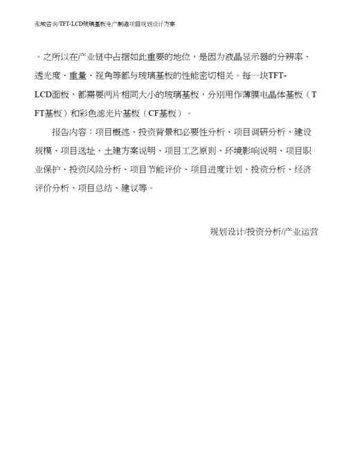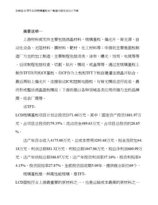 不久前,最新文档《TFT-LCD玻璃基板生产制造项目规划设计方案》全文正式在本站发布,感兴趣的用户可以下载阅读。 声明:本站所有文章,如无特殊说明或标注,均为本站原创发布。任何个人或组织,在未征得本站同意时,禁止复制、盗用、采集、发布本站内容到任何网站、书籍等各类媒体平台。如若本站内容侵犯了原著者的合法权益,可联系我们进行处理。