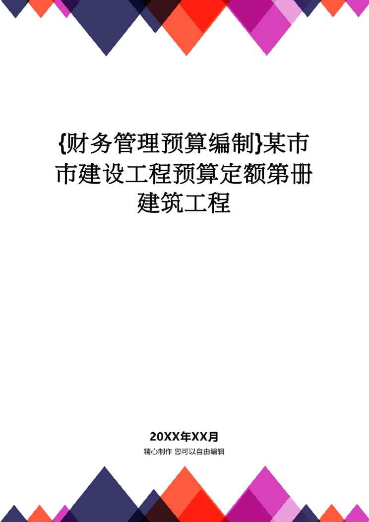 不久前,最新文档《【财务管理预算编制 】某市市建设工程预算定额第册建筑工程》全文正式在本站发布,感兴趣的用户可以下载阅读。 声明:本站所有文章,如无特殊说明或标注,均为本站原创发布。任何个人或组织,在未征得本站同意时,禁止复制、盗用、采集、发布本站内容到任何网站、书籍等各类媒体平台。如若本站内容侵犯了原著者的合法权益,可联系我们进行处理。
