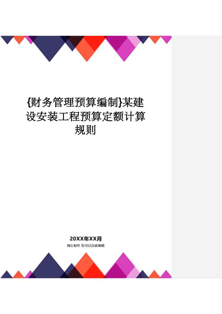 本站资深用户发布了最新的《【财务管理预算编制 】某建设安装工程预算定额计算规则》文档,以下内容为预览,详细内容可下载阅读。 声明:本站所有文章,如无特殊说明或标注,均为本站原创发布。任何个人或组织,在未征得本站同意时,禁止复制、盗用、采集、发布本站内容到任何网站、书籍等各类媒体平台。如若本站内容侵犯了原著者的合法权益,可联系我们进行处理。