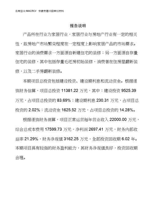 本站正式发布了《安徽家居项目申报材料》文档,文档详细内容可下载阅读。 声明:本站所有文章,如无特殊说明或标注,均为本站原创发布。任何个人或组织,在未征得本站同意时,禁止复制、盗用、采集、发布本站内容到任何网站、书籍等各类媒体平台。如若本站内容侵犯了原著者的合法权益,可联系我们进行处理。