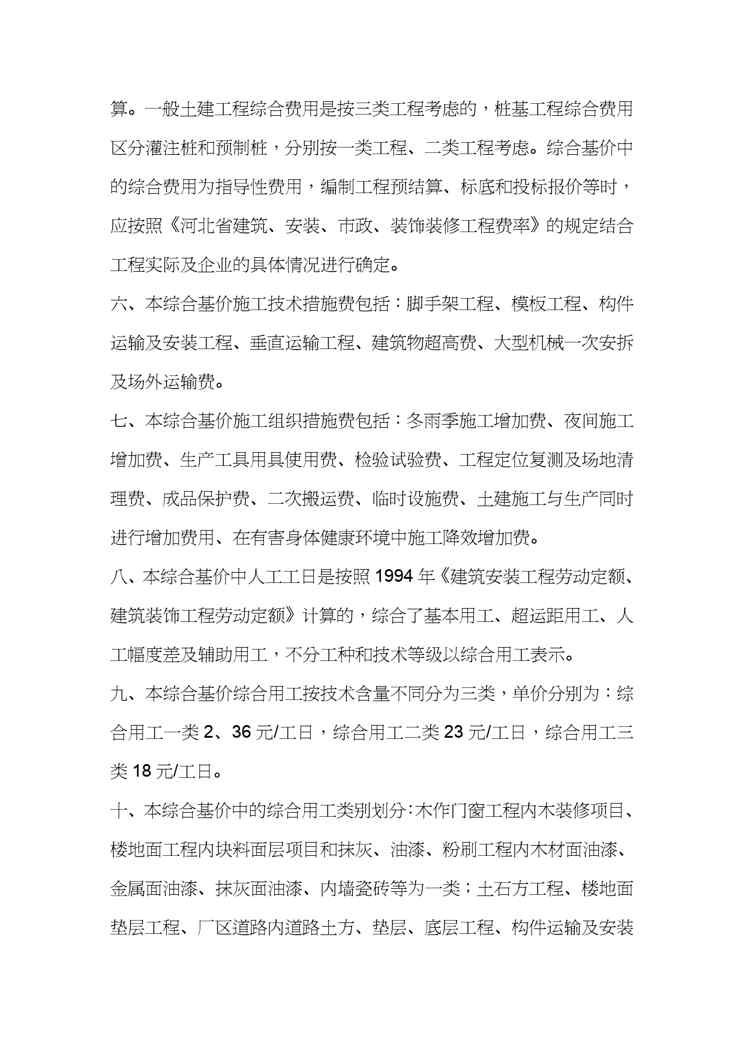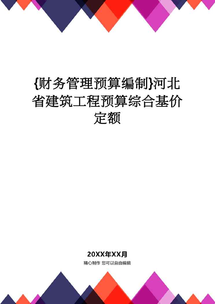 本站资深用户发布了最新的《【财务管理预算编制 】河北省建筑工程预算综合基价定额》文档,以下内容为预览,详细内容可下载阅读。 声明:本站所有文章,如无特殊说明或标注,均为本站原创发布。任何个人或组织,在未征得本站同意时,禁止复制、盗用、采集、发布本站内容到任何网站、书籍等各类媒体平台。如若本站内容侵犯了原著者的合法权益,可联系我们进行处理。