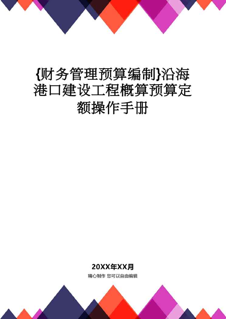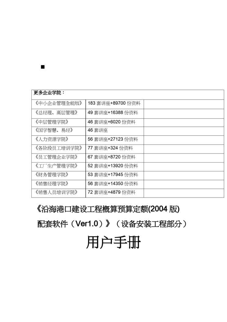 本站资深用户发布了最新的《【财务管理预算编制 】沿海港口建设工程概算预算定额操作手册》文档,以下内容为预览,详细内容可下载阅读。 声明:本站所有文章,如无特殊说明或标注,均为本站原创发布。任何个人或组织,在未征得本站同意时,禁止复制、盗用、采集、发布本站内容到任何网站、书籍等各类媒体平台。如若本站内容侵犯了原著者的合法权益,可联系我们进行处理。