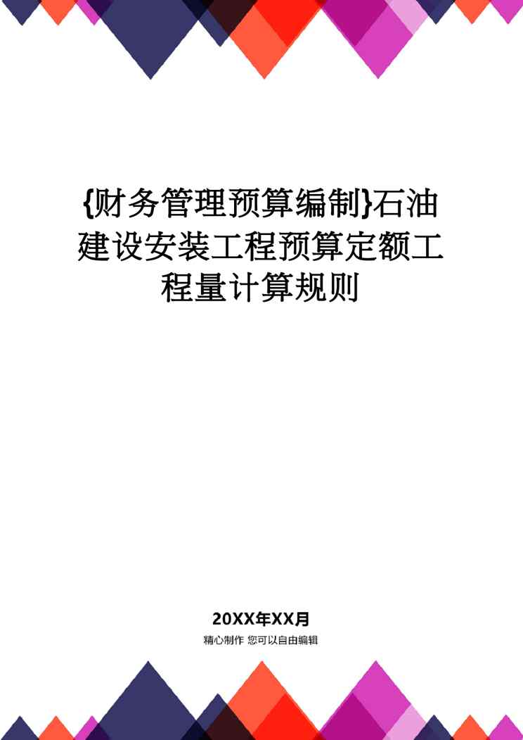 不久前,最新文档《【财务管理预算编制 】石油建设安装工程预算定额工程量计算规则》全文正式在本站发布,感兴趣的用户可以下载阅读。 声明:本站所有文章,如无特殊说明或标注,均为本站原创发布。任何个人或组织,在未征得本站同意时,禁止复制、盗用、采集、发布本站内容到任何网站、书籍等各类媒体平台。如若本站内容侵犯了原著者的合法权益,可联系我们进行处理。