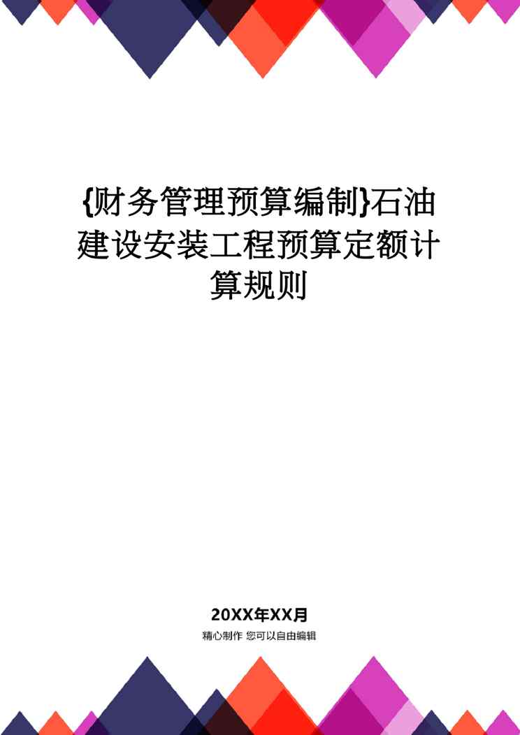 本站资深用户发布了最新的《【财务管理预算编制 】石油建设安装工程预算定额计算规则》文档,以下内容为预览,详细内容可下载阅读。 声明:本站所有文章,如无特殊说明或标注,均为本站原创发布。任何个人或组织,在未征得本站同意时,禁止复制、盗用、采集、发布本站内容到任何网站、书籍等各类媒体平台。如若本站内容侵犯了原著者的合法权益,可联系我们进行处理。