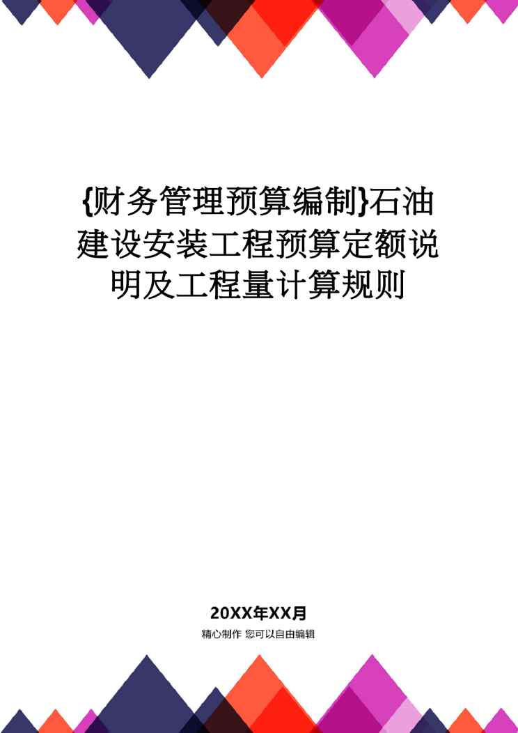 本站正式发布了《【财务管理预算编制 】石油建设安装工程预算定额说明及工程量计算规则》文档,文档详细内容可下载阅读。 声明:本站所有文章,如无特殊说明或标注,均为本站原创发布。任何个人或组织,在未征得本站同意时,禁止复制、盗用、采集、发布本站内容到任何网站、书籍等各类媒体平台。如若本站内容侵犯了原著者的合法权益,可联系我们进行处理。