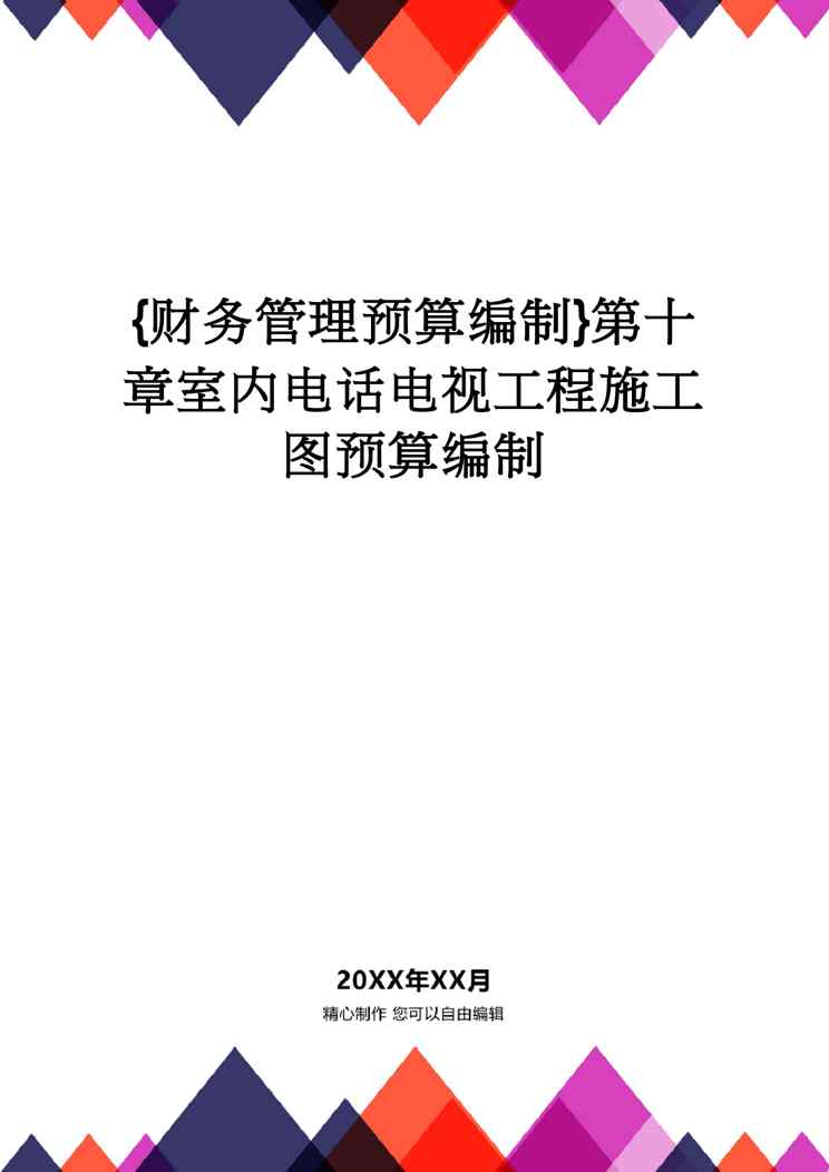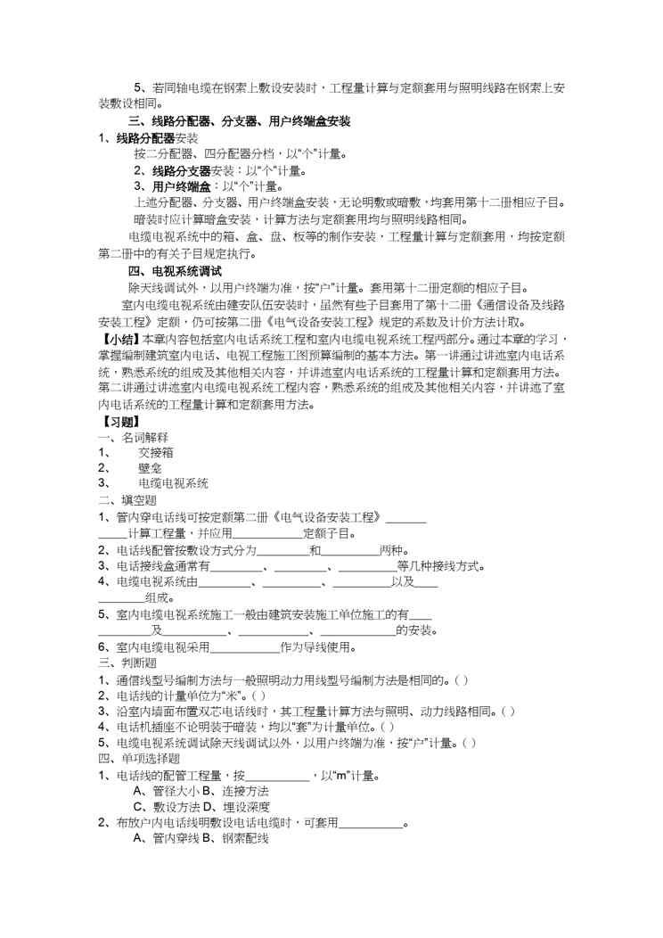 不久前,最新文档《【财务管理预算编制 】第十章室内电话电视工程施工图预算编制》全文正式在本站发布,感兴趣的用户可以下载阅读。 声明:本站所有文章,如无特殊说明或标注,均为本站原创发布。任何个人或组织,在未征得本站同意时,禁止复制、盗用、采集、发布本站内容到任何网站、书籍等各类媒体平台。如若本站内容侵犯了原著者的合法权益,可联系我们进行处理。