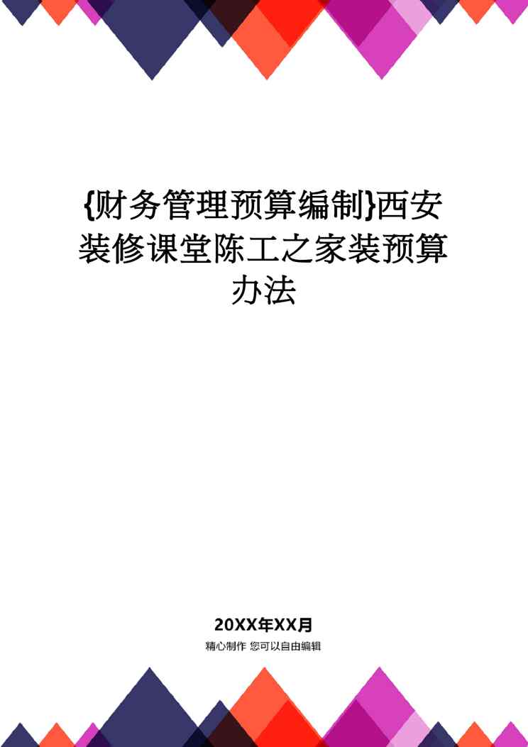 不久前,最新文档《【财务管理预算编制 】西安装修课堂陈工之家装预算办法》全文正式在本站发布,感兴趣的用户可以下载阅读。 声明:本站所有文章,如无特殊说明或标注,均为本站原创发布。任何个人或组织,在未征得本站同意时,禁止复制、盗用、采集、发布本站内容到任何网站、书籍等各类媒体平台。如若本站内容侵犯了原著者的合法权益,可联系我们进行处理。
