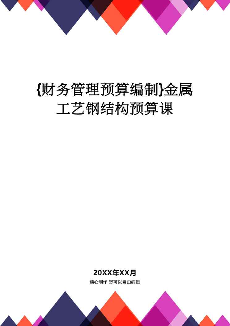 本站正式发布了《【财务管理预算编制 】金属工艺钢结构预算课》文档,文档详细内容可下载阅读。 声明:本站所有文章,如无特殊说明或标注,均为本站原创发布。任何个人或组织,在未征得本站同意时,禁止复制、盗用、采集、发布本站内容到任何网站、书籍等各类媒体平台。如若本站内容侵犯了原著者的合法权益,可联系我们进行处理。
