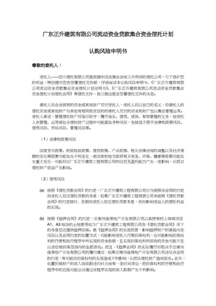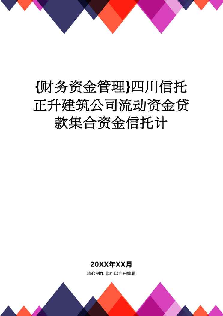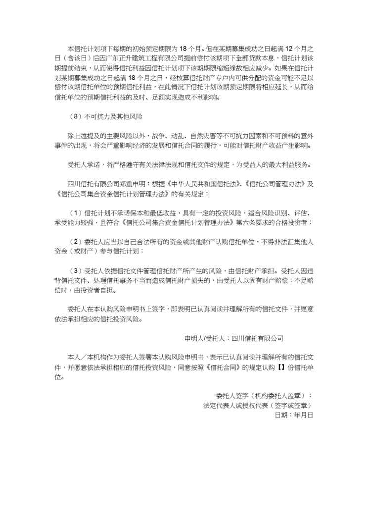 本站正式发布了《【财务资金管理 】四川信托正升建筑公司流动资金贷款集合资金信托计》文档,文档详细内容可下载阅读。 声明:本站所有文章,如无特殊说明或标注,均为本站原创发布。任何个人或组织,在未征得本站同意时,禁止复制、盗用、采集、发布本站内容到任何网站、书籍等各类媒体平台。如若本站内容侵犯了原著者的合法权益,可联系我们进行处理。