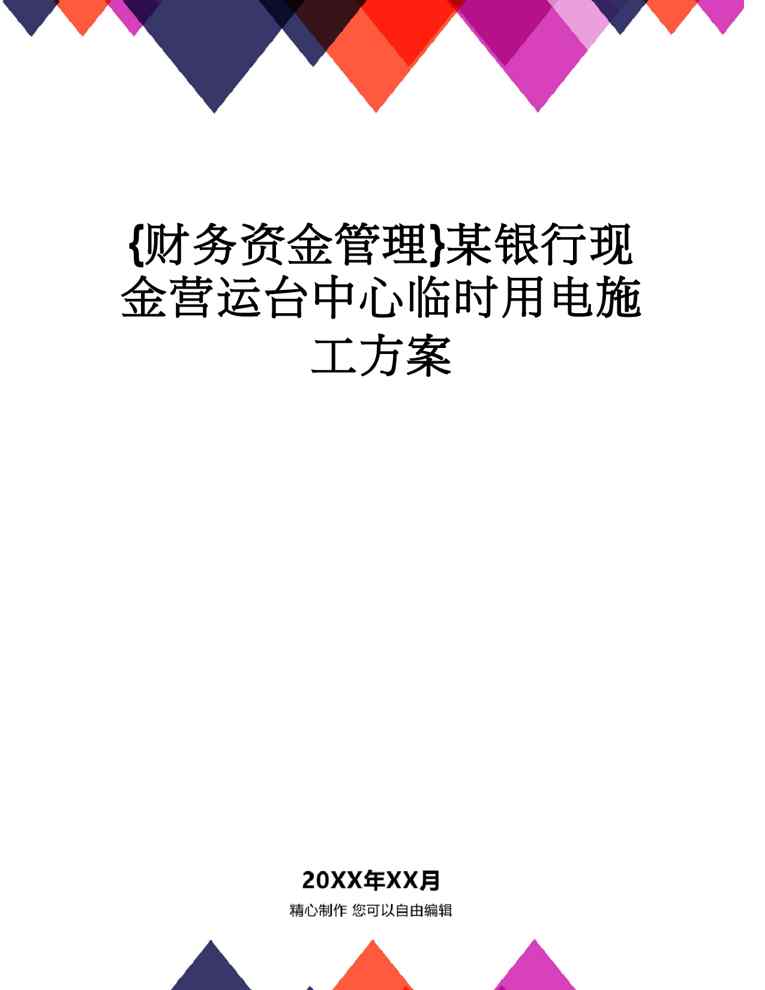 本站正式发布了《【财务资金管理 】某银行现金营运台中心临时用电施工方案》文档,文档详细内容可下载阅读。 声明:本站所有文章,如无特殊说明或标注,均为本站原创发布。任何个人或组织,在未征得本站同意时,禁止复制、盗用、采集、发布本站内容到任何网站、书籍等各类媒体平台。如若本站内容侵犯了原著者的合法权益,可联系我们进行处理。