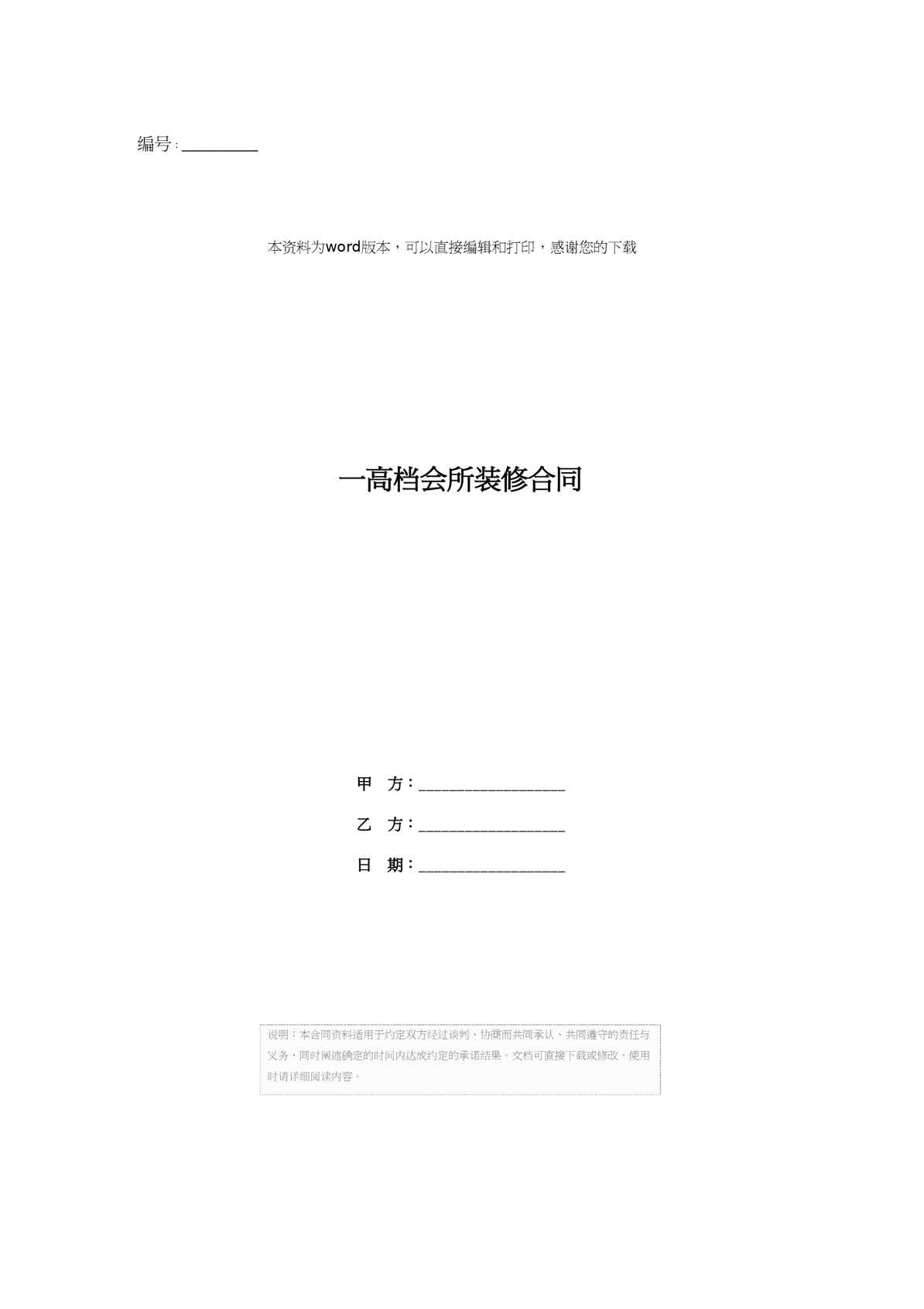 不久前,最新文档《一高档会所装修合同》全文正式在本站发布,感兴趣的用户可以下载阅读。 声明:本站所有文章,如无特殊说明或标注,均为本站原创发布。任何个人或组织,在未征得本站同意时,禁止复制、盗用、采集、发布本站内容到任何网站、书籍等各类媒体平台。如若本站内容侵犯了原著者的合法权益,可联系我们进行处理。