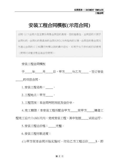本站正式发布了《安装工程合同模板(示范合同)》文档,文档详细内容可下载阅读。 声明:本站所有文章,如无特殊说明或标注,均为本站原创发布。任何个人或组织,在未征得本站同意时,禁止复制、盗用、采集、发布本站内容到任何网站、书籍等各类媒体平台。如若本站内容侵犯了原著者的合法权益,可联系我们进行处理。
