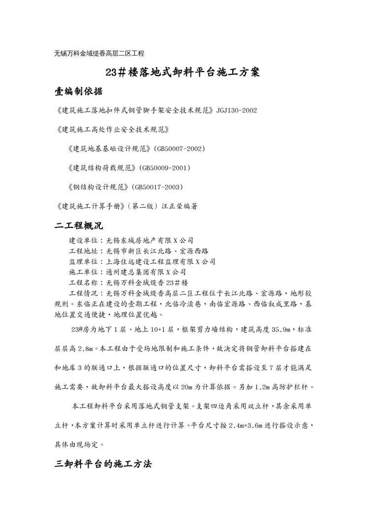 本站资深用户发布了最新的《万科企业管理钢管落地式卸料平台施工方案万科正式》文档,以下内容为预览,详细内容可下载阅读。 声明:本站所有文章,如无特殊说明或标注,均为本站原创发布。任何个人或组织,在未征得本站同意时,禁止复制、盗用、采集、发布本站内容到任何网站、书籍等各类媒体平台。如若本站内容侵犯了原著者的合法权益,可联系我们进行处理。