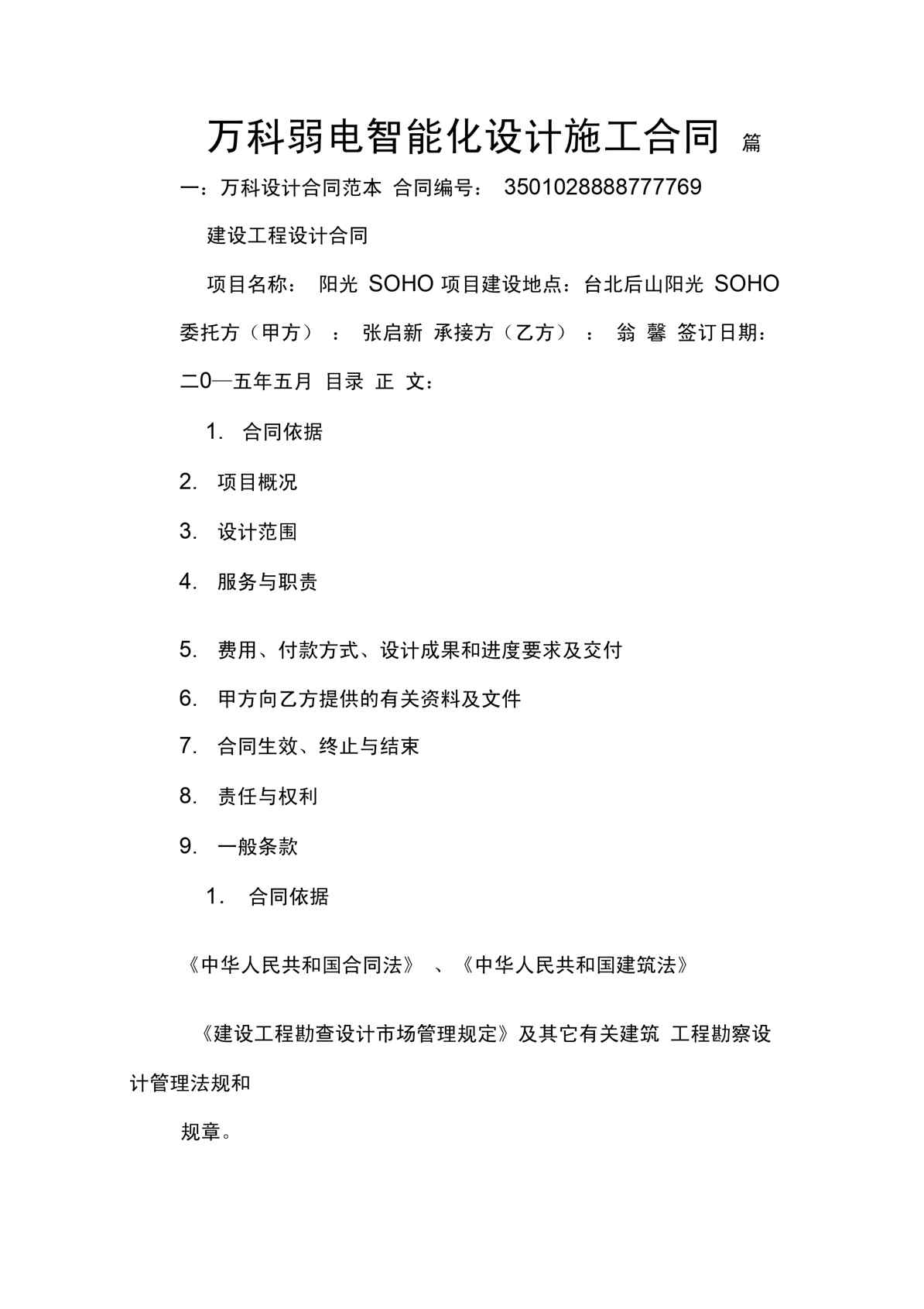 不久前,最新文档《万科弱电智能化设计施工合同》全文正式在本站发布,感兴趣的用户可以下载阅读。 声明:本站所有文章,如无特殊说明或标注,均为本站原创发布。任何个人或组织,在未征得本站同意时,禁止复制、盗用、采集、发布本站内容到任何网站、书籍等各类媒体平台。如若本站内容侵犯了原著者的合法权益,可联系我们进行处理。
