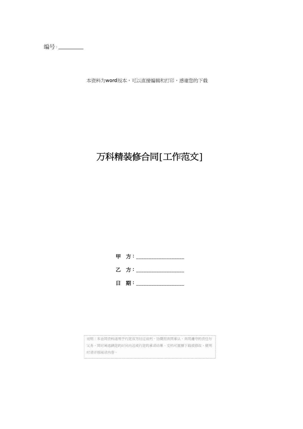 本站正式发布了《万科精装修合同》文档,文档详细内容可下载阅读。 声明:本站所有文章,如无特殊说明或标注,均为本站原创发布。任何个人或组织,在未征得本站同意时,禁止复制、盗用、采集、发布本站内容到任何网站、书籍等各类媒体平台。如若本站内容侵犯了原著者的合法权益,可联系我们进行处理。
