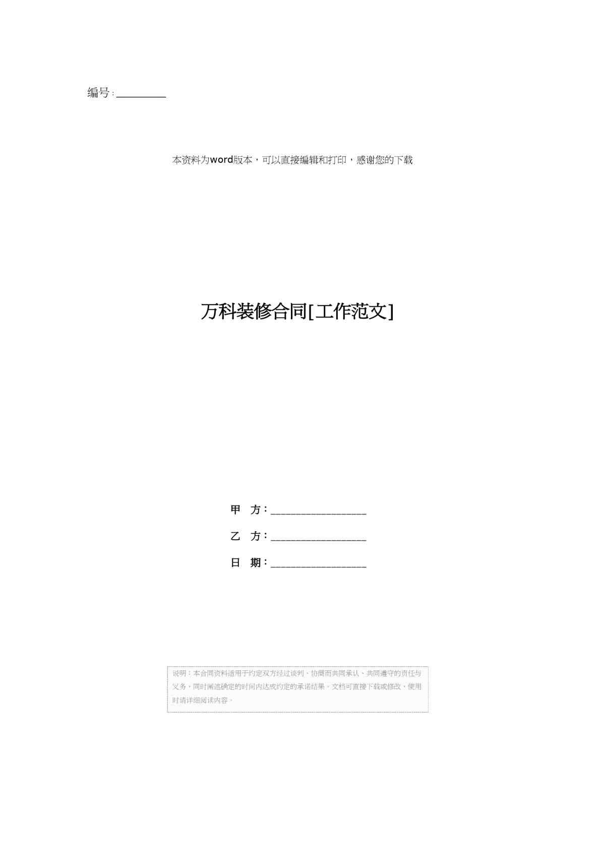 不久前,最新文档《万科装修合同》全文正式在本站发布,感兴趣的用户可以下载阅读。 声明:本站所有文章,如无特殊说明或标注,均为本站原创发布。任何个人或组织,在未征得本站同意时,禁止复制、盗用、采集、发布本站内容到任何网站、书籍等各类媒体平台。如若本站内容侵犯了原著者的合法权益,可联系我们进行处理。