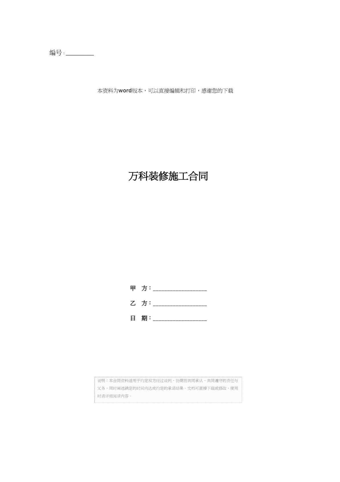 本站正式发布了《万科装修施工合同》文档,文档详细内容可下载阅读。 声明:本站所有文章,如无特殊说明或标注,均为本站原创发布。任何个人或组织,在未征得本站同意时,禁止复制、盗用、采集、发布本站内容到任何网站、书籍等各类媒体平台。如若本站内容侵犯了原著者的合法权益,可联系我们进行处理。
