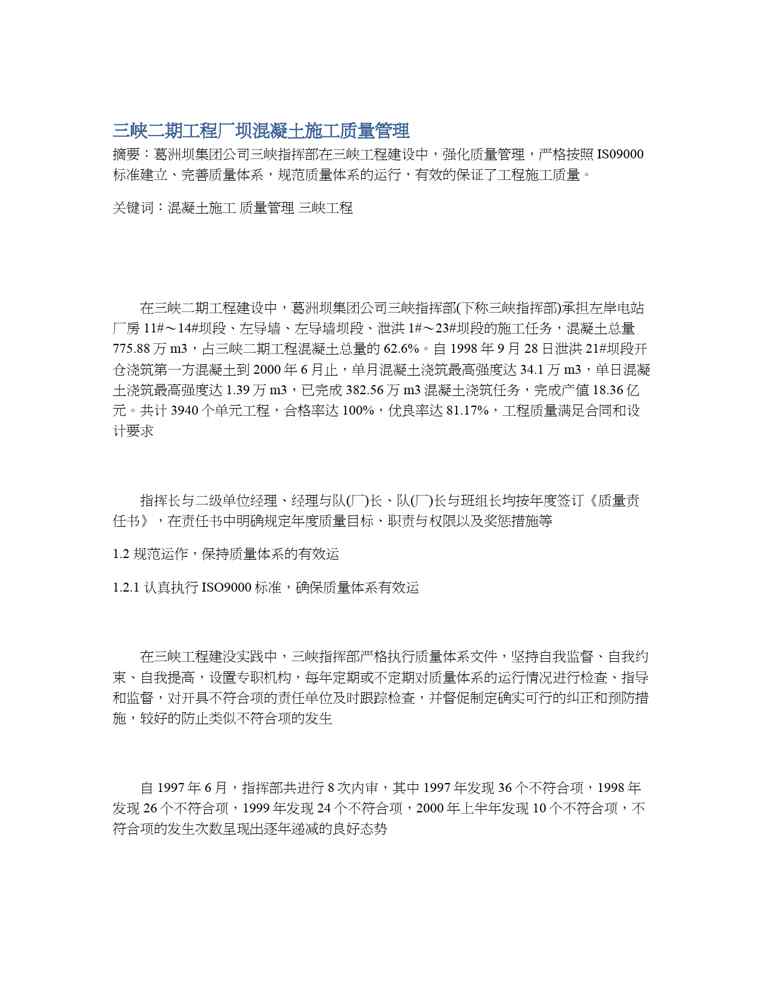 本站正式发布了《三峡二期工程厂坝混凝土施工质量管理》文档,文档详细内容可下载阅读。 声明:本站所有文章,如无特殊说明或标注,均为本站原创发布。任何个人或组织,在未征得本站同意时,禁止复制、盗用、采集、发布本站内容到任何网站、书籍等各类媒体平台。如若本站内容侵犯了原著者的合法权益,可联系我们进行处理。