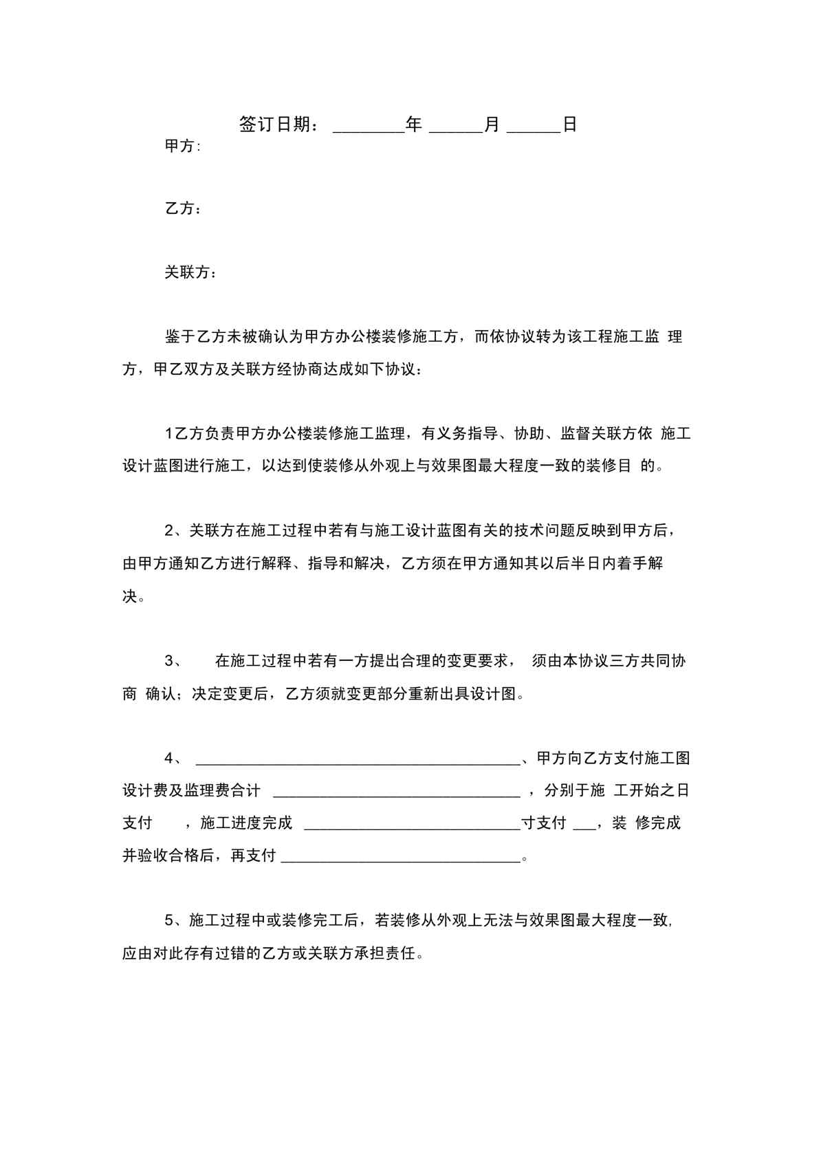 本站资深用户发布了最新的《三方办公楼装修施工监理合同协议书范本模板》文档,以下内容为预览,详细内容可下载阅读。 声明:本站所有文章,如无特殊说明或标注,均为本站原创发布。任何个人或组织,在未征得本站同意时,禁止复制、盗用、采集、发布本站内容到任何网站、书籍等各类媒体平台。如若本站内容侵犯了原著者的合法权益,可联系我们进行处理。