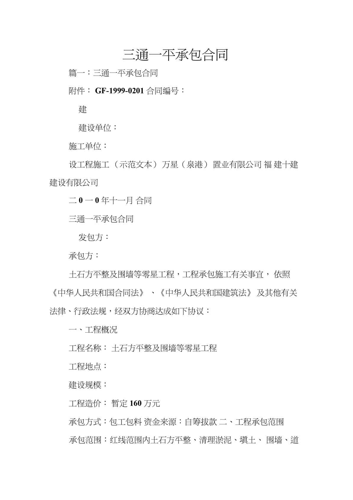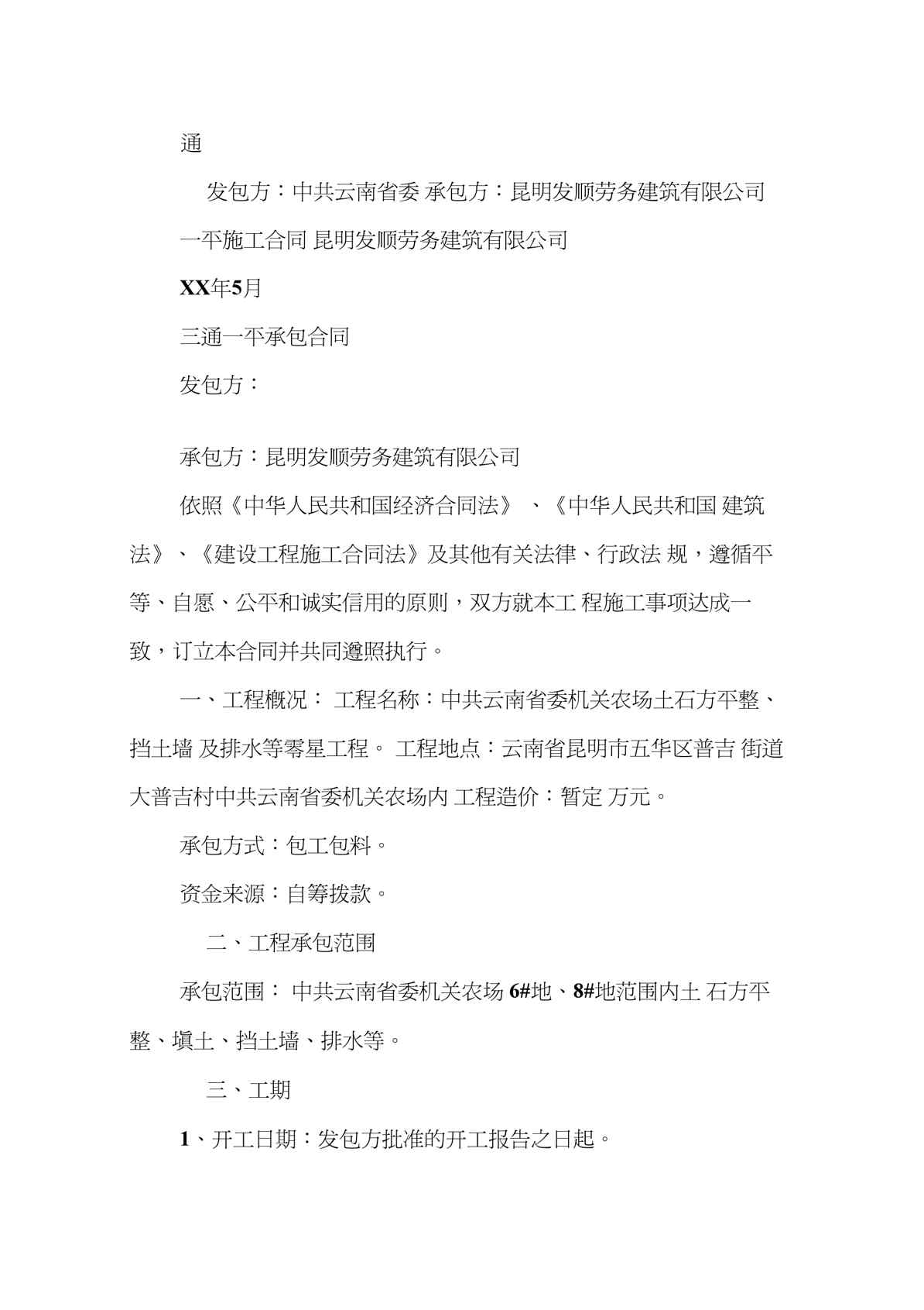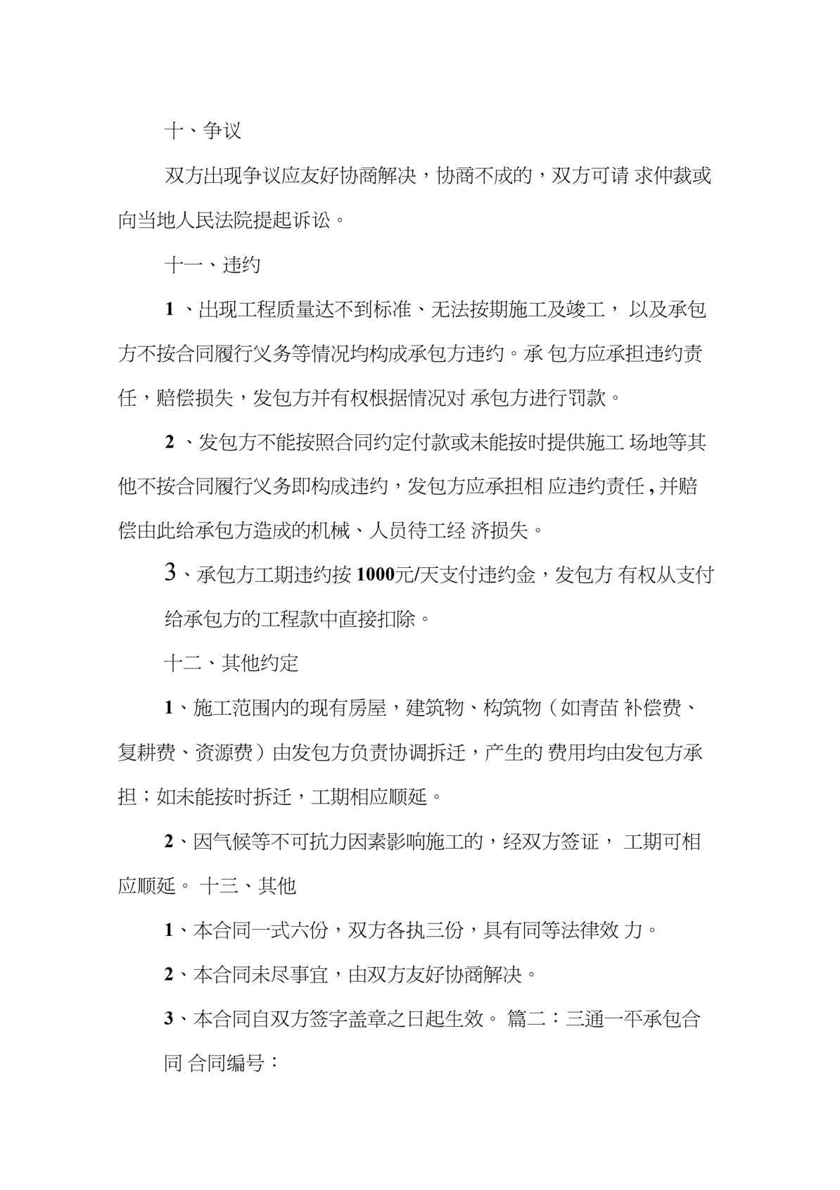 本站资深用户发布了最新的《三通一平承包合同》文档,以下内容为预览,详细内容可下载阅读。 声明:本站所有文章,如无特殊说明或标注,均为本站原创发布。任何个人或组织,在未征得本站同意时,禁止复制、盗用、采集、发布本站内容到任何网站、书籍等各类媒体平台。如若本站内容侵犯了原著者的合法权益,可联系我们进行处理。