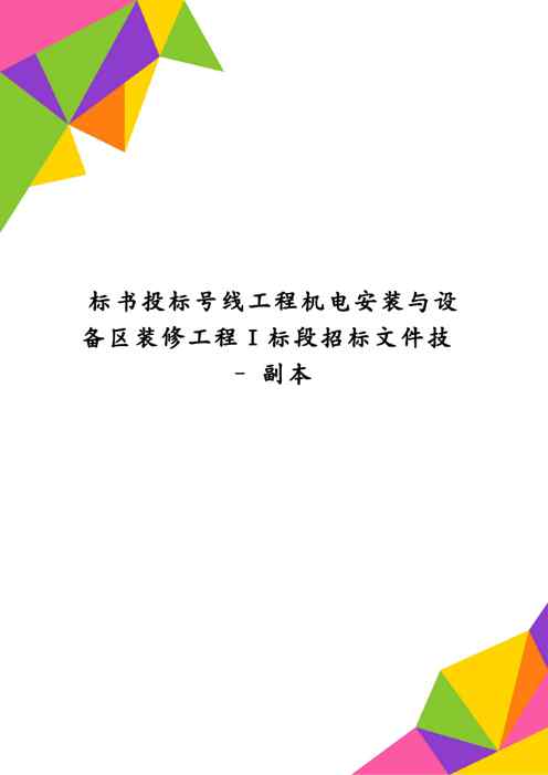 本站正式发布了《标书投标号线工程机电安装与设备区装修工程Ⅰ标段招标文件技》文档,文档详细内容可下载阅读。 声明:本站所有文章,如无特殊说明或标注,均为本站原创发布。任何个人或组织,在未征得本站同意时,禁止复制、盗用、采集、发布本站内容到任何网站、书籍等各类媒体平台。如若本站内容侵犯了原著者的合法权益,可联系我们进行处理。