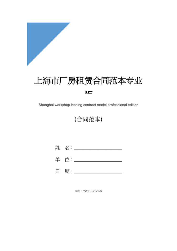 本站正式发布了《上海市厂房租赁合同范本专业版》文档,文档详细内容可下载阅读。 声明:本站所有文章,如无特殊说明或标注,均为本站原创发布。任何个人或组织,在未征得本站同意时,禁止复制、盗用、采集、发布本站内容到任何网站、书籍等各类媒体平台。如若本站内容侵犯了原著者的合法权益,可联系我们进行处理。