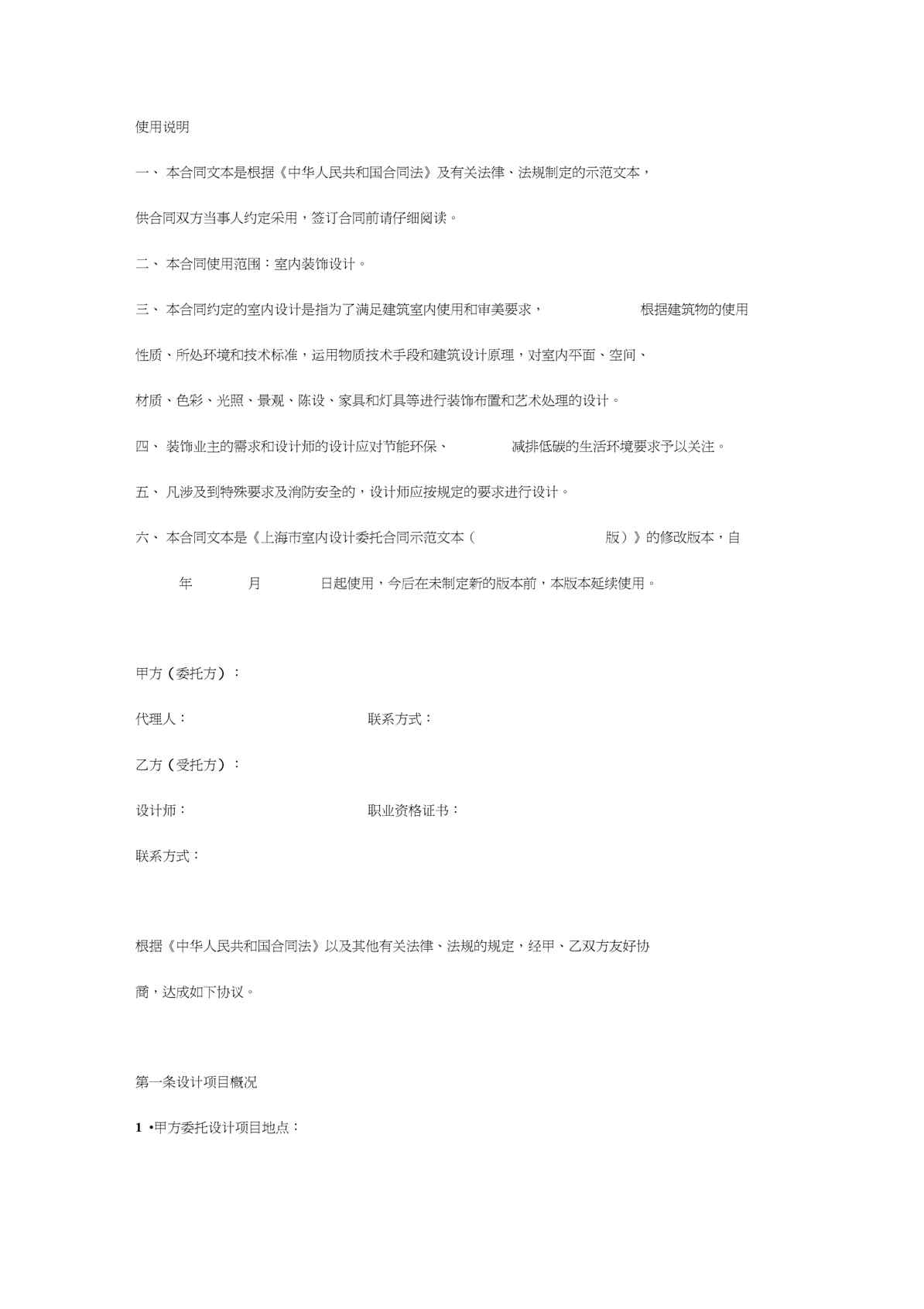 本站资深用户发布了最新的《上海市室内设计合同》文档,以下内容为预览,详细内容可下载阅读。