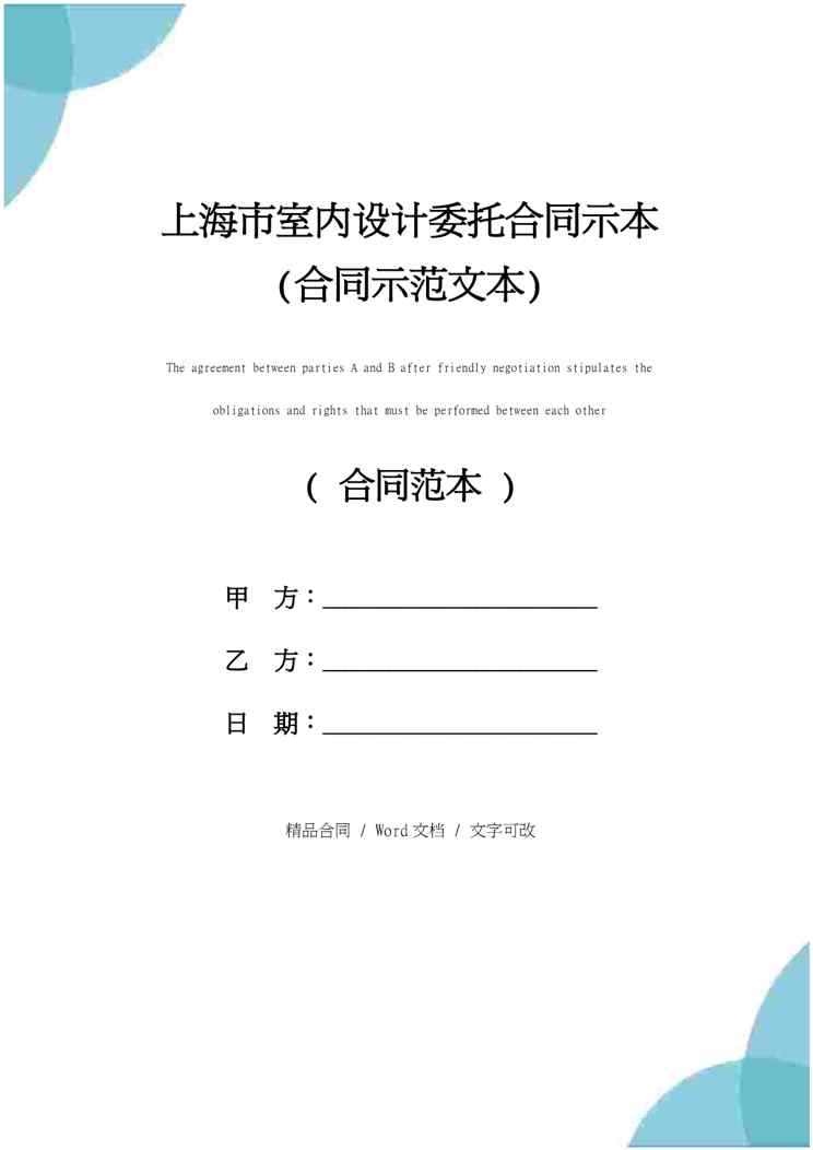 本站资深用户发布了最新的《上海市室内设计委托合同示本(合同示范文本)》文档,以下内容为预览,详细内容可下载阅读。 声明:本站所有文章,如无特殊说明或标注,均为本站原创发布。任何个人或组织,在未征得本站同意时,禁止复制、盗用、采集、发布本站内容到任何网站、书籍等各类媒体平台。如若本站内容侵犯了原著者的合法权益,可联系我们进行处理。