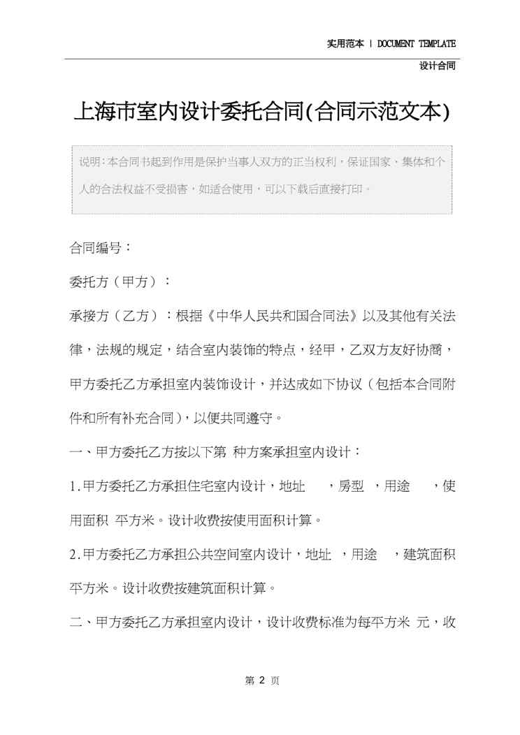 不久前,最新文档《上海市室内设计委托合同精装版》全文正式在本站发布,感兴趣的用户可以下载阅读。 声明:本站所有文章,如无特殊说明或标注,均为本站原创发布。任何个人或组织,在未征得本站同意时,禁止复制、盗用、采集、发布本站内容到任何网站、书籍等各类媒体平台。如若本站内容侵犯了原著者的合法权益,可联系我们进行处理。