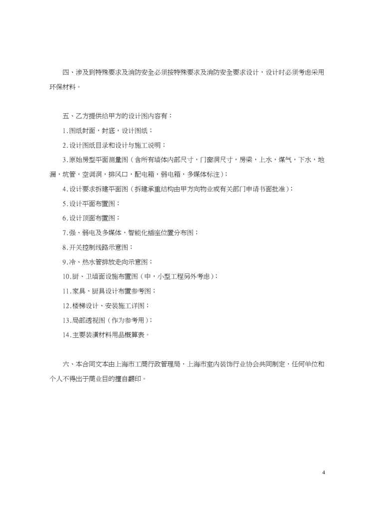 本站资深用户发布了最新的《上海市室内设计委托合同范文》文档,以下内容为预览,详细内容可下载阅读。 声明:本站所有文章,如无特殊说明或标注,均为本站原创发布。任何个人或组织,在未征得本站同意时,禁止复制、盗用、采集、发布本站内容到任何网站、书籍等各类媒体平台。如若本站内容侵犯了原著者的合法权益,可联系我们进行处理。