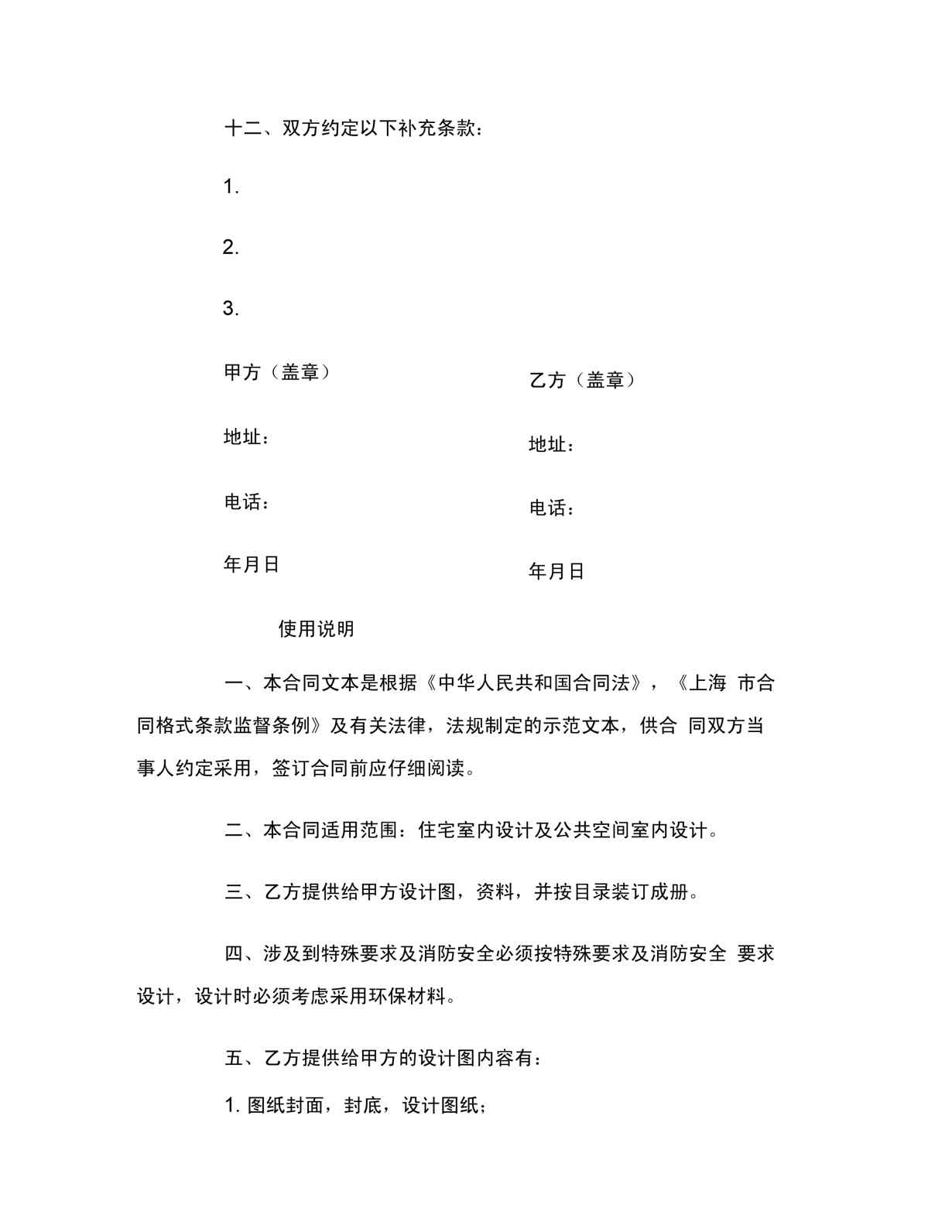 本站资深用户发布了最新的《上海市室内设计委托合同范本》文档,以下内容为预览,详细内容可下载阅读。 声明:本站所有文章,如无特殊说明或标注,均为本站原创发布。任何个人或组织,在未征得本站同意时,禁止复制、盗用、采集、发布本站内容到任何网站、书籍等各类媒体平台。如若本站内容侵犯了原著者的合法权益,可联系我们进行处理。
