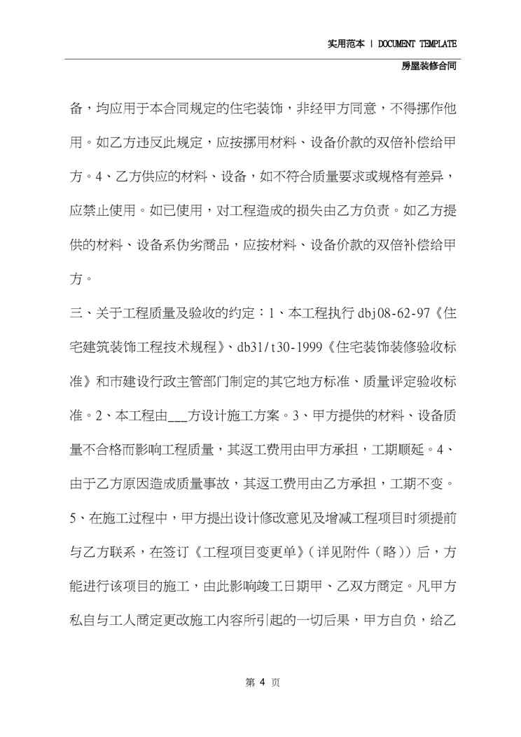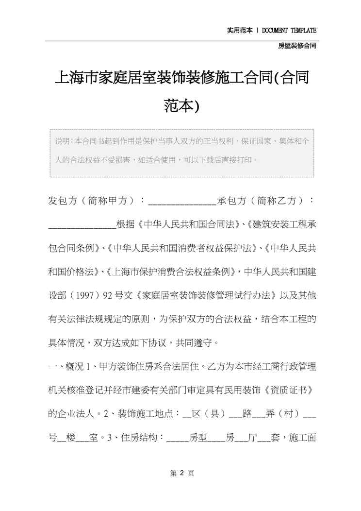 不久前,最新文档《上海市家庭居室装饰装修施工合同修订版》全文正式在本站发布,感兴趣的用户可以下载阅读。 声明:本站所有文章,如无特殊说明或标注,均为本站原创发布。任何个人或组织,在未征得本站同意时,禁止复制、盗用、采集、发布本站内容到任何网站、书籍等各类媒体平台。如若本站内容侵犯了原著者的合法权益,可联系我们进行处理。