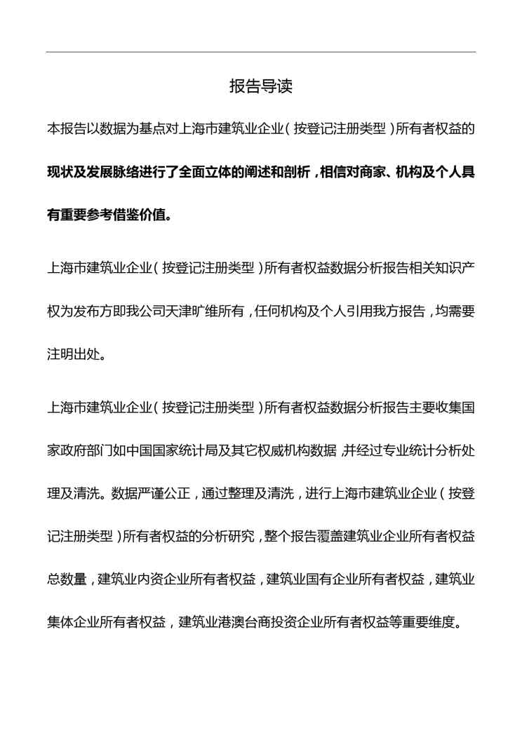 本站资深用户发布了最新的《上海市建筑业企业(按登记注册类型)所有者权益基本情况数据分析报告2019版》文档,以下内容为预览,详细内容可下载阅读。 声明:本站所有文章,如无特殊说明或标注,均为本站原创发布。任何个人或组织,在未征得本站同意时,禁止复制、盗用、采集、发布本站内容到任何网站、书籍等各类媒体平台。如若本站内容侵犯了原著者的合法权益,可联系我们进行处理。