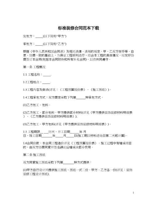 本站资深用户发布了最新的《标准装修合同范本》文档,以下内容为预览,详细内容可下载阅读。 声明:本站所有文章,如无特殊说明或标注,均为本站原创发布。任何个人或组织,在未征得本站同意时,禁止复制、盗用、采集、发布本站内容到任何网站、书籍等各类媒体平台。如若本站内容侵犯了原著者的合法权益,可联系我们进行处理。