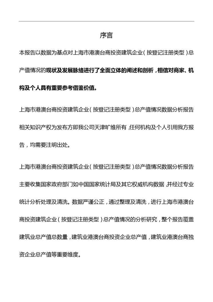 本站资深用户发布了最新的《上海市港澳台商投资建筑企业(按登记注册类型)总产值情况数据分析报告2019版》文档,以下内容为预览,详细内容可下载阅读。 声明:本站所有文章,如无特殊说明或标注,均为本站原创发布。任何个人或组织,在未征得本站同意时,禁止复制、盗用、采集、发布本站内容到任何网站、书籍等各类媒体平台。如若本站内容侵犯了原著者的合法权益,可联系我们进行处理。