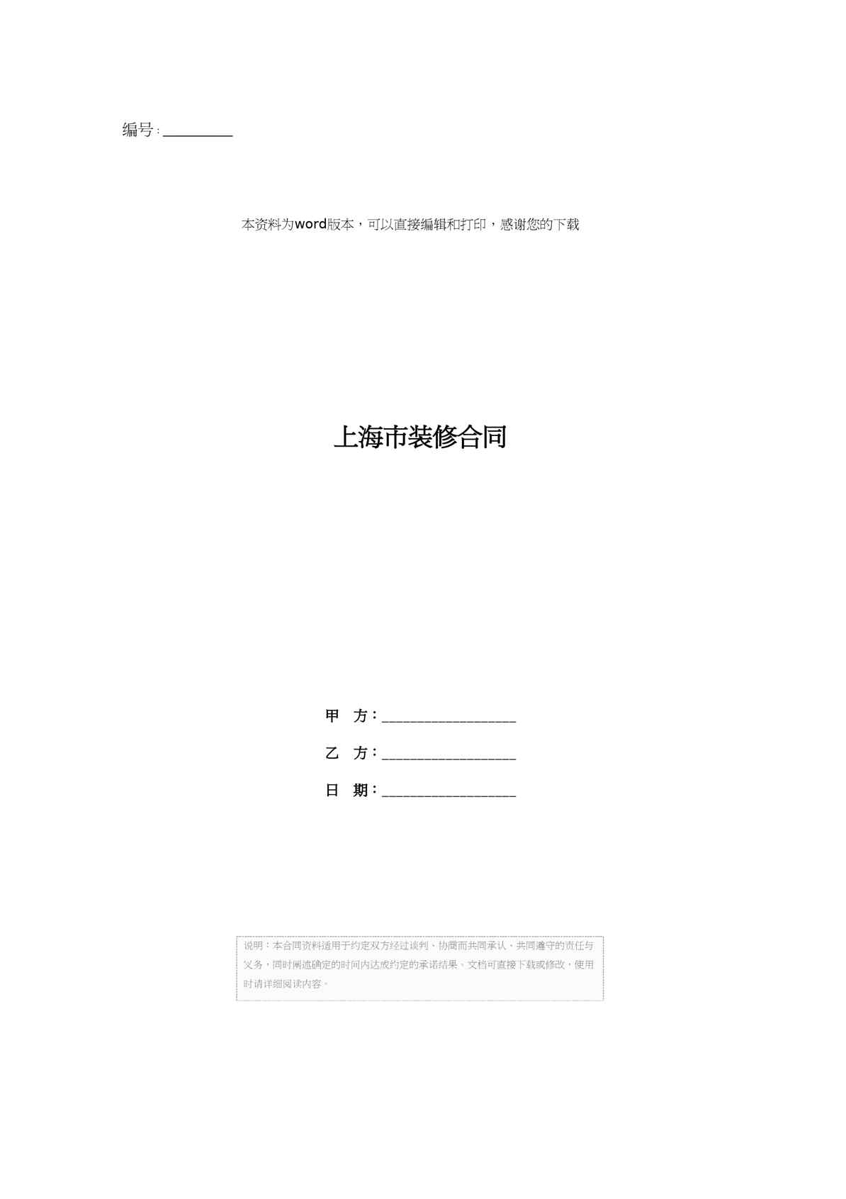 本站正式发布了《上海市装修合同》文档,文档详细内容可下载阅读。 声明:本站所有文章,如无特殊说明或标注,均为本站原创发布。任何个人或组织,在未征得本站同意时,禁止复制、盗用、采集、发布本站内容到任何网站、书籍等各类媒体平台。如若本站内容侵犯了原著者的合法权益,可联系我们进行处理。