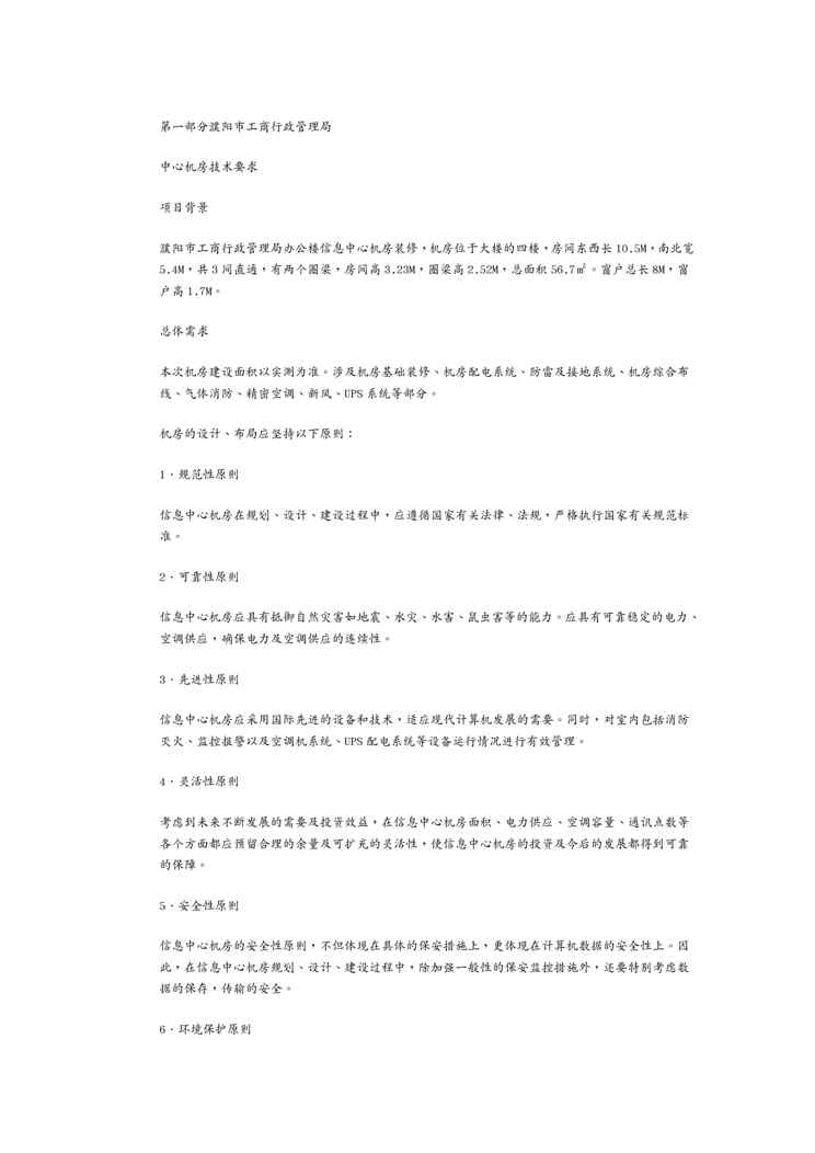 不久前,最新文档《(技术规范标准)濮阳市工商局标准机房装修及大楼综合布线技术要求》全文正式在本站发布,感兴趣的用户可以下载阅读。 声明:本站所有文章,如无特殊说明或标注,均为本站原创发布。任何个人或组织,在未征得本站同意时,禁止复制、盗用、采集、发布本站内容到任何网站、书籍等各类媒体平台。如若本站内容侵犯了原著者的合法权益,可联系我们进行处理。